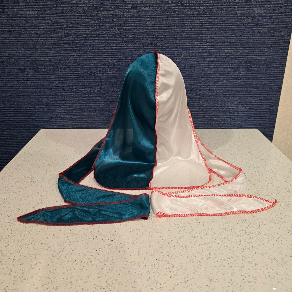 Premium two-tone Turquoise & white durag with regular red stitching.